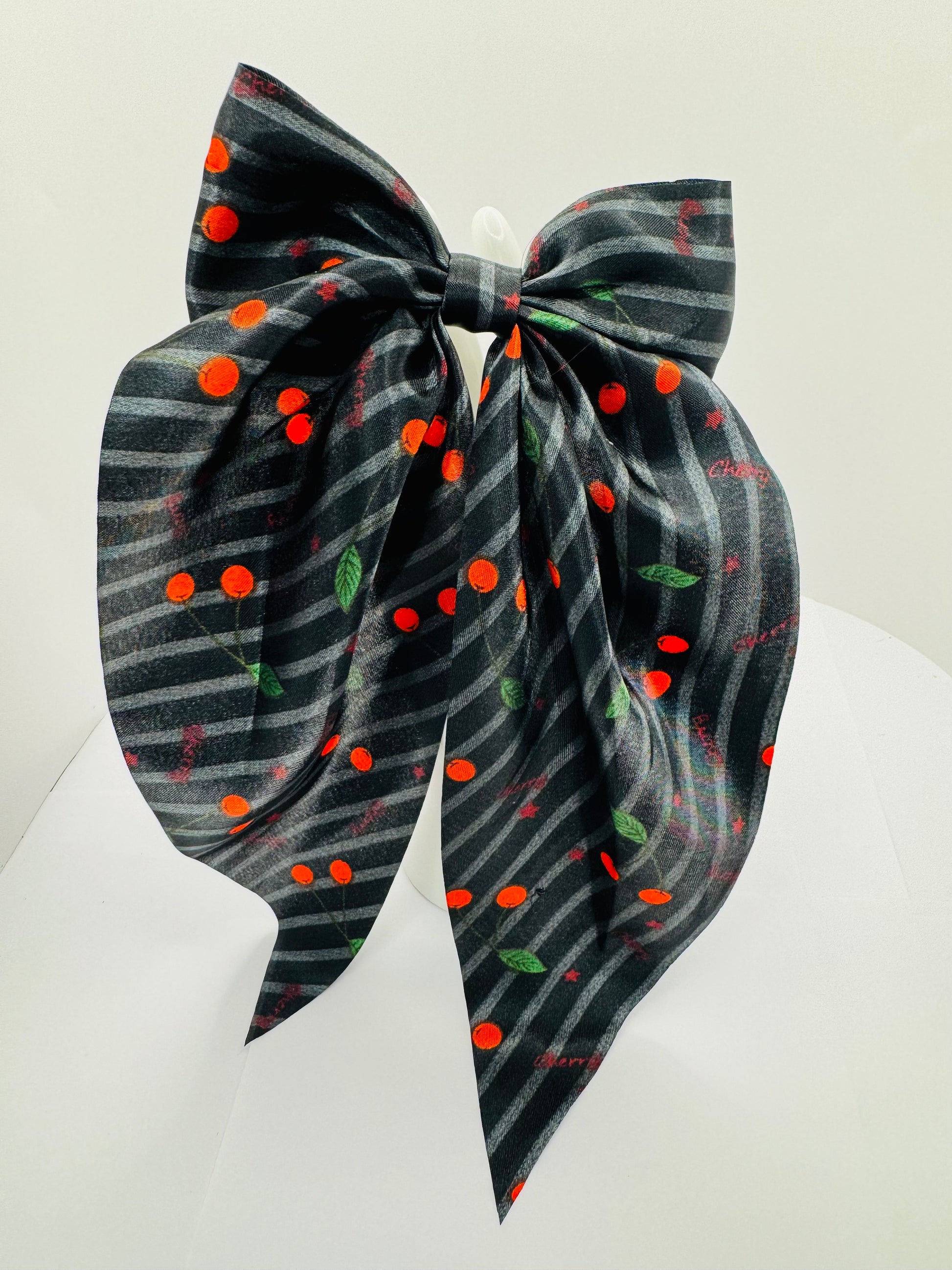 Add a touch of charm and sophistication to any outfit with this luxurious large silky bow! Measuring 7 inches by 14 inches, this beautifully crafted bow features a vibrant printed design, making it perfect for parties, daily outings, or any fashionable occasion.